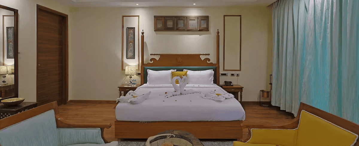 The Deluxe Room offers modern elegance, plush comfort, and breathtaking nature views. With refined interiors and thoughtful amenities, it ensures a luxurious yet peaceful stay, truly enhancing your experience at the best resort in Dehradun with swimming pool.